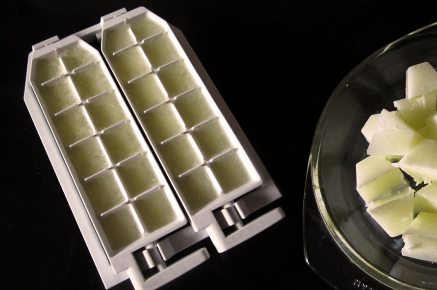 1) LATTE CONGELATO: Forse non l’ingrediente a noi più familiare, ma comunque un’ottima aggiunta per ricercare la consistenza caratteristica. Fate ghiacciare il latte (meglio in un vassoio per il ghiaccio) in freezer. Non è necessario, naturalmente, che congeli alla perfezione.