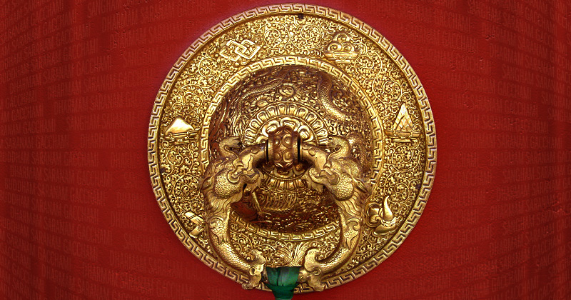 L’interno del tempio è una vasta sala colorata con tre affascinanti statue dorate. L’incenso, il silenzio sottolineato dal cinguettio degli uccelli che volano in pace e lo sguardo assorto delle persone raccolte in preghiera invitano alla mediazione –potete sedere sui piccoli cuscini blu messi a disposizione degli ospiti. I dipinti alle pareti e le statue del Buddha (al centro), Padmasambhava e Amitayus v’introducono al sapere e ai miti buddhisti.