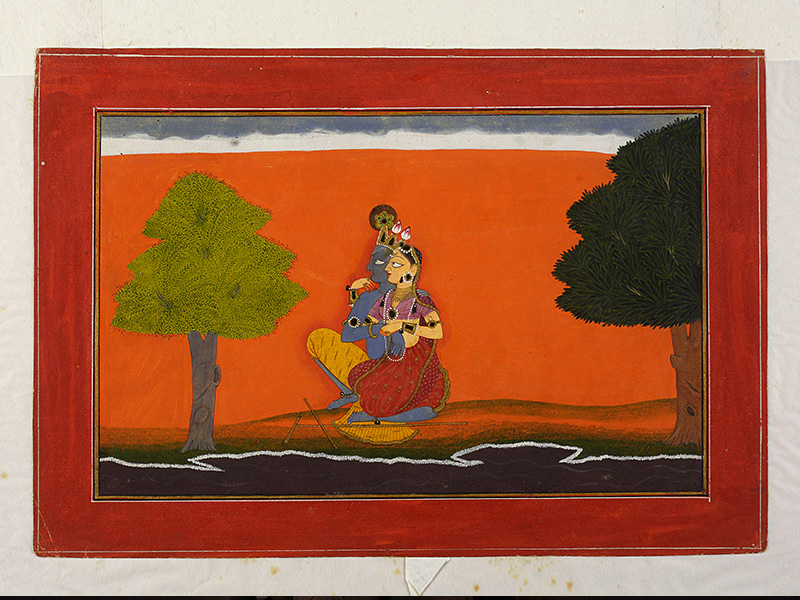 Nell'immagine, una pagina tratta dalla Gita, sono raffigurati i due amanti più famosi dell'India: Radha e il divino Krishna.