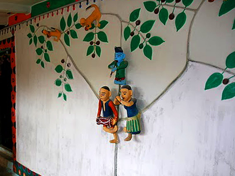 Sonabai accettò la situazione –non ha mai voluto rilasciare commenti sull’accaduto- ma la sua reazione fu straordinaria. Per il figlio la donna si mise a creare bambole di terra, usando il fango del cortile, la paglia, e spezie, pietre e piante per ricavare i colori. La creatività prorompente in lei esplose e Sonabai non riuscì più a fermarsi dall’impastare, colorare… fino a creare un mondo colorato e magico all’interno della suo piccolo mondo domestico.