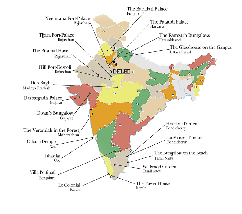 Definiti dai fondatori (Aman Nath e Francis Wacziarg) “non-hotel” hotel, gli alberghi nascono dall’amore per i palazzi storici, per i mattoni che trasudano storia.Tutto cominciò nel Rajasthan, nella regione dello Shekhavati, dove la coppia si innamorò delle haveli, le case affrescate dei commercianti della comunità marwari. Davanti alla decadenza degli affreschi e della case i due tentarono dapprima di raccogliere fondi per arginare i danni del tempo e dell’incuria dai proprietari che vivevano altrove. Ma la missione fu fallimentare: pubblicarono un libro (Rajasthan: The Painted Walls of Shekhawati) ma non raccolsero soldi per alcun tipo di restauro. Allora realizzarono l’esigenza di rendere i proprietari orgogliosi degli edifici che raccontano del passato. I fatti valgono più delle parole e gli esempi chiarificano le idee. Nel 1986 Aman e Francis acquistarono un decrepito forte seicentesco a qualche centinaia di chilometri da Delhi. Ci vollero cinque anni e molte fatiche per restaurarlo. Nel 1991 il Neemerana Fort fu inaugurato come il primo dei non-hotel Hotel.