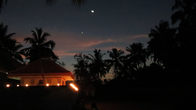 I Keralesi sanno godersi la vita e prendersi le giuste pause, sedendo e chiacchierando sotto l'ombra dei grandi alberi attorno ai templi. Tra febbraio e maggio è stagione di festival, praticamente impossibile non imbattersi in qualche festa, dove per pranzo vi offrono il tradizionale sadya sulle foglie di platano-da mangiare rigorosamente con le mani.